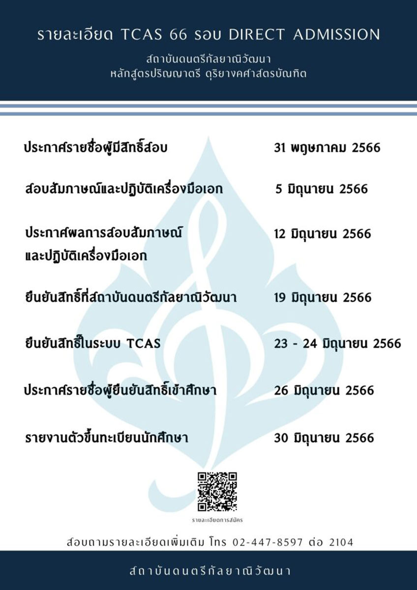 สถาบันดนตรีกัลยาณิวัฒนาเปิดรับสมัครนักศึกษาใหม่รอบ Direct Admission หลักสูตรปริญญาตรี ดุริยางคศาสตรบัณฑิต