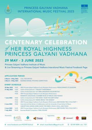Princess Galyani Vadhana Institute of Music is pleased to invite audience to join PGMF – Princess Galyani Vadhana International Music Festival 2023 for performances that celebrate a centenary of Her Royal Highness Princess Galyani Vadhana.