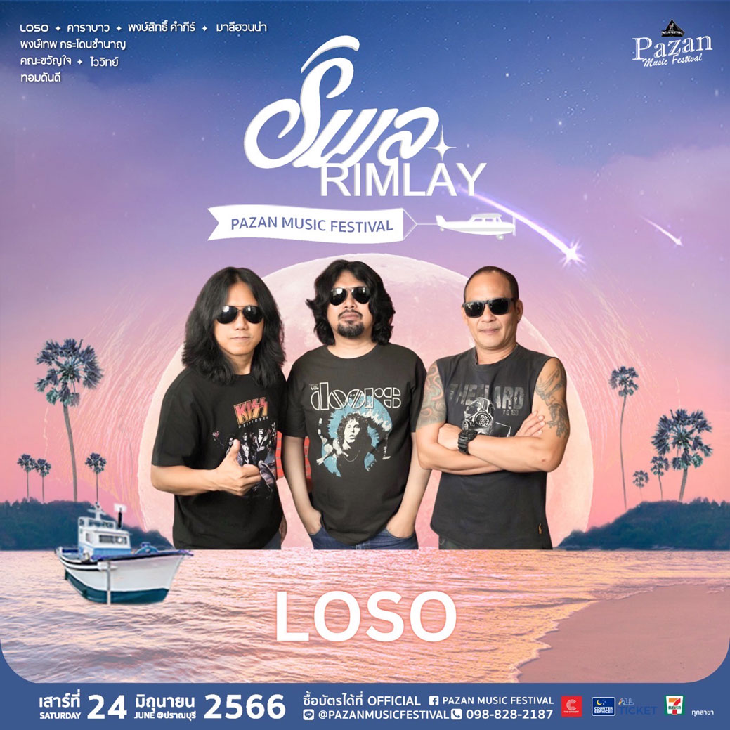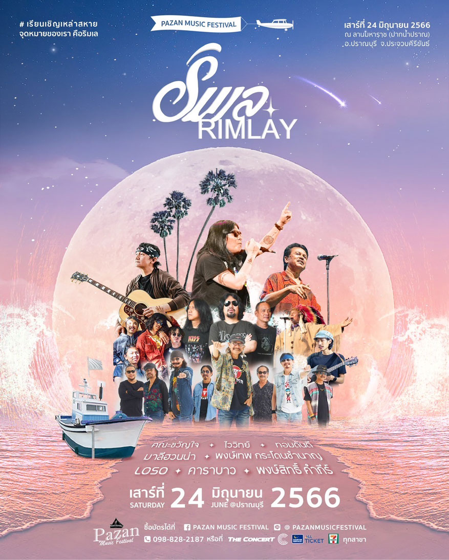 มาร่วมส่งท้ายฤดูร้อนปี 2023 พร้อมกับปะทะความมันส์ครั้งประวัติศาสตร์กับ…”คอนเสิร์ตริมทะเล” ที่จัดขึ้นอย่างยิ่งใหญ่อลังการ ซึ่งจะขนเหล่าขุนพลเพื่อชีวิต และ ราชาร็อกแอนด์โรล LOSO รวมถึงศิลปินสุดฮอตมากมายหลายหลากสไตล์ อาทิ “ปู พงษ์สิทธิ์ คัมภีร์”, “คณะขวัญใจ”, “คาราบาว” ฯลฯ มาไว้ ณ Pazan Music Festival แห่งเดียว โดยคอนเสิร์ตครั้งนี้มีชื่อตอนว่า “ริมเล” (RIMLAY) และจะจัดขึ้นในวันเสาร์ที่ 24 มิถุนายน 2566 ที่ ลานมหาราช ปากน้ำปราณ ประจวบคีรีขันธ์ งานนี้จะเริ่มระเบิดความมันส์ตั้งแต่ 15.00 – 00.00 น.