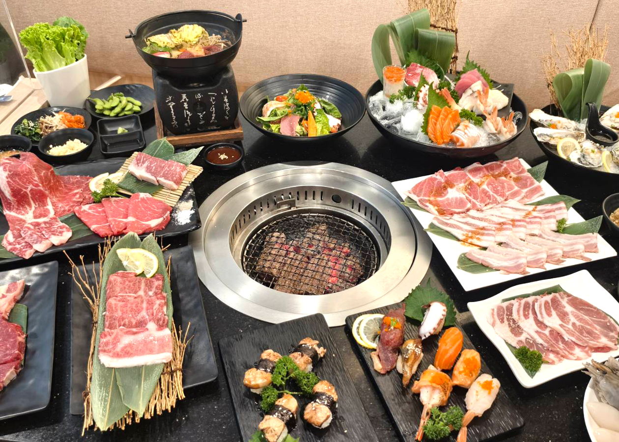 ในไลน์บุฟเฟต์มีรายการอาหารให้เลือกมากกว่า 100 รายการ ที่คัดสรรมาแล้วว่าเป็นญี่ปุ่นแบบแท้ๆ รสชาติถูกปากคนไทย อาทิ เนื้อวัวนำเข้าจากต่างประเทศ JP, AUS, US มีเอกสารรับรองชัดเจนตรวจสอบที่มาได้จริง อาหารทะเลสด ๆ กุ้งแม่น้ำ หอยนางรม หอยแมลงภู่ หอยเซลล์ หรือจะเป็น ซูชิ ซาชิมิ ก็ยกขบวนมาเต็มแม็ก ทั้ง Salmon, Oyster, Ikura, Hamaji, Tuna, Unagi, Hokkigai และอีกเพียบ กินได้แบบเต็มอิ่ม 2 ชั่วโมงเต็ม โดยบุฟเฟต์มี 4 แบบ ให้เลือกอร่อย Supreme Buffet ราคา 1,499 net, Platinum Buffet ราคา 999 net, Gold Buffet ราคา 799 net และ Silver Buffet ราคา 499 net