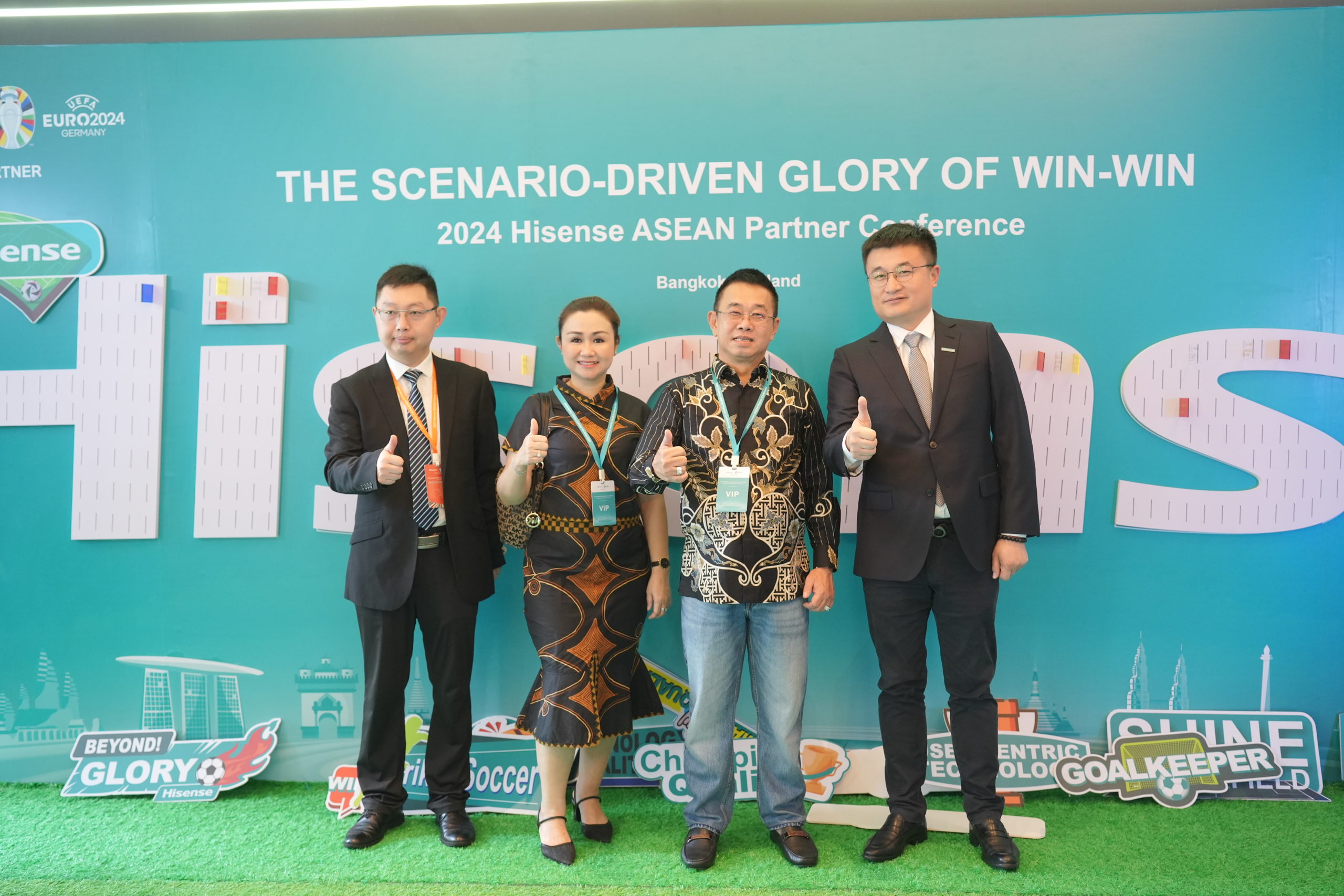 กรุงเทพฯ ประเทศไทย 23 เมษายน 2567 – Hisense อาเซียน จัดประชุมคู่ค้าพันธมิตร ยิ่งใหญ่ ที่ประเทศไทย ในหัวข้อ ” The Scenario-driven Glory of Win-win ” มีพันธมิตรนานาชาติเข้าร่วมงานกว่า 400 ราย อาทิ ไทย มาเลเซีย อินโดนีเซีย เวียดนาม ฟิลิปปินส์ และประเทศอื่นๆ พร้อมเปิดตัวกลยุทธ์ และผลิตภัณฑ์ใหม่ 2024 ดึง Sport Marking เสริมรับ UEFA EURO 2024
