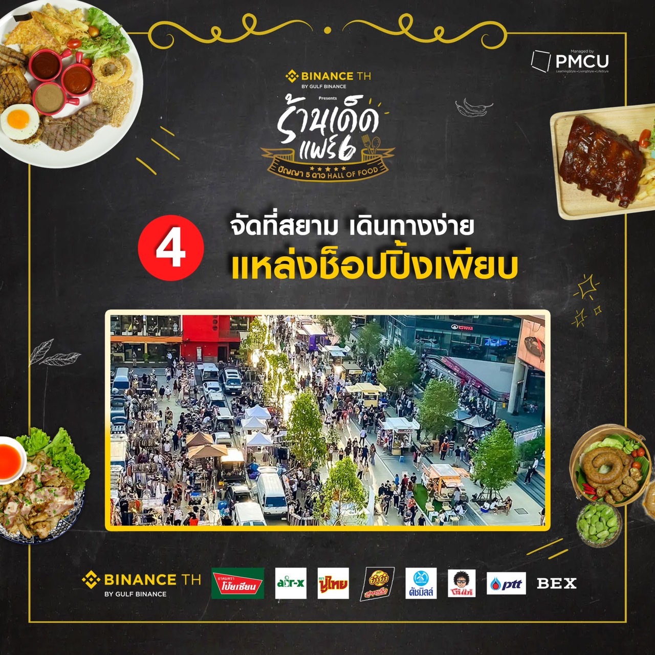 เตรียม สนุก จุก ฟิน ไปกับงานอาหารใจกลางเมือง “BINANCE TH แพลตฟอร์มเทรดสินทรัพย์ดิจิตอลมาตรฐานโลก presents ร้านเด็ดแฟร์ 6 ปัญญา 5 ดาว Hall of Food” ปักหมุดความอร่อยร้านเด็ดทั่วไทย พบกัน 8-9-10 พ.ย.นี้ เวลา 11 โมง ถึง 3 ทุ่ม ที่สยามสแควร์!!