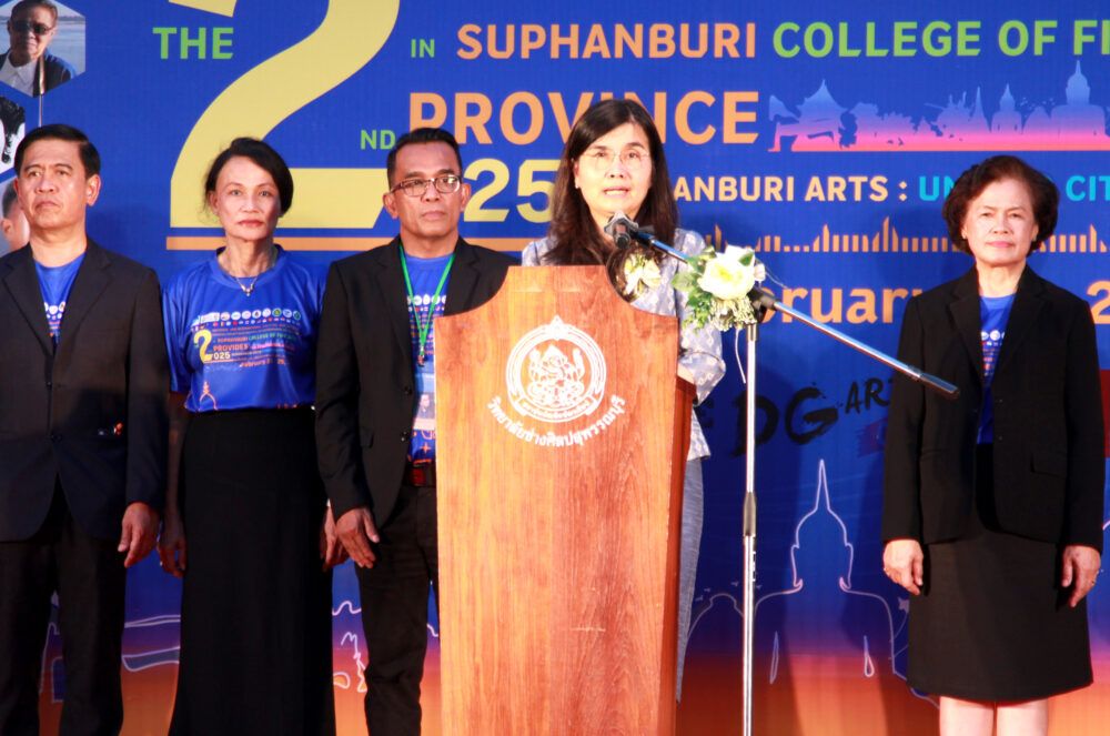 จังหวัดสุพรรณบุรี – ระหว่างวันที่ 21 ถึง 25 กุมภาพันธ์ พ.ศ. 2568 จังหวัดสุพรรณบุรีได้เป็นเจ้าภาพจัดงาน “โครงการเผยแพร่แลกเปลี่ยนด้านศิลปวัฒนธรรม และสัมมนาเชิงปฏิบัติการสร้างสรรค์ผลงานศิลปะร่วมสมัย ระดับชาติ และนานาชาติ ครั้งที่ 2” ภายใต้หัวข้อ “ศิลปกรรมสุพรรณบุรี เมืองดนตรียูเนสโก” โดยมีวัตถุประสงค์เพื่อส่งเสริมการแลกเปลี่ยนความรู้และสร้างแรงบันดาลใจในการสร้างสรรค์ผลงานศิลปะร่วมสมัย ทั้งในระดับชาติและนานาชาติ