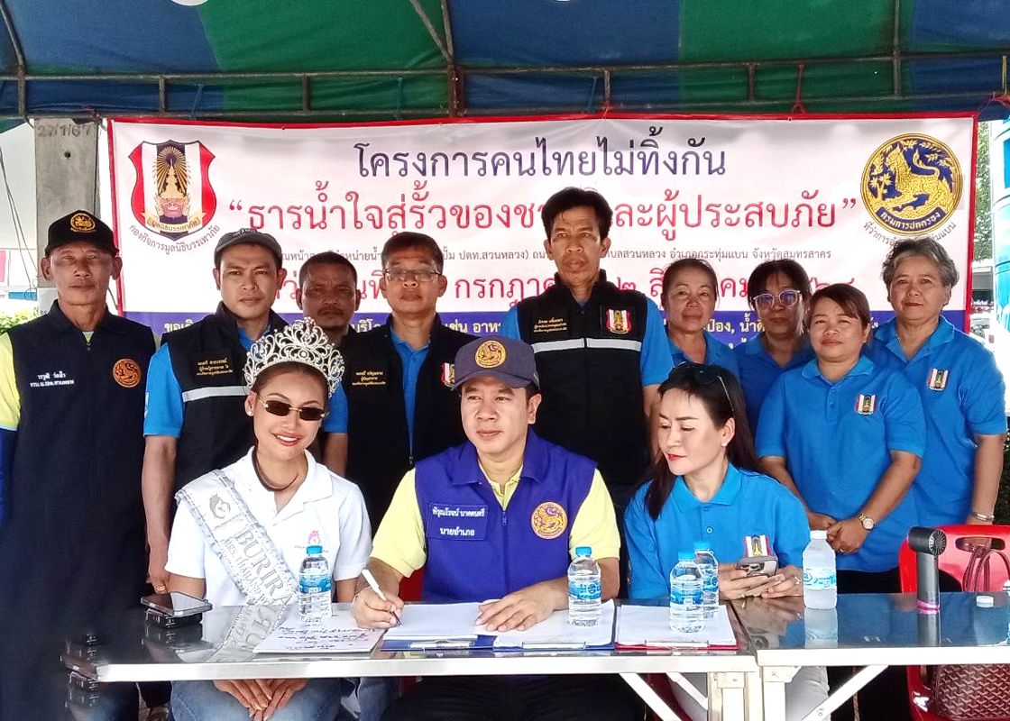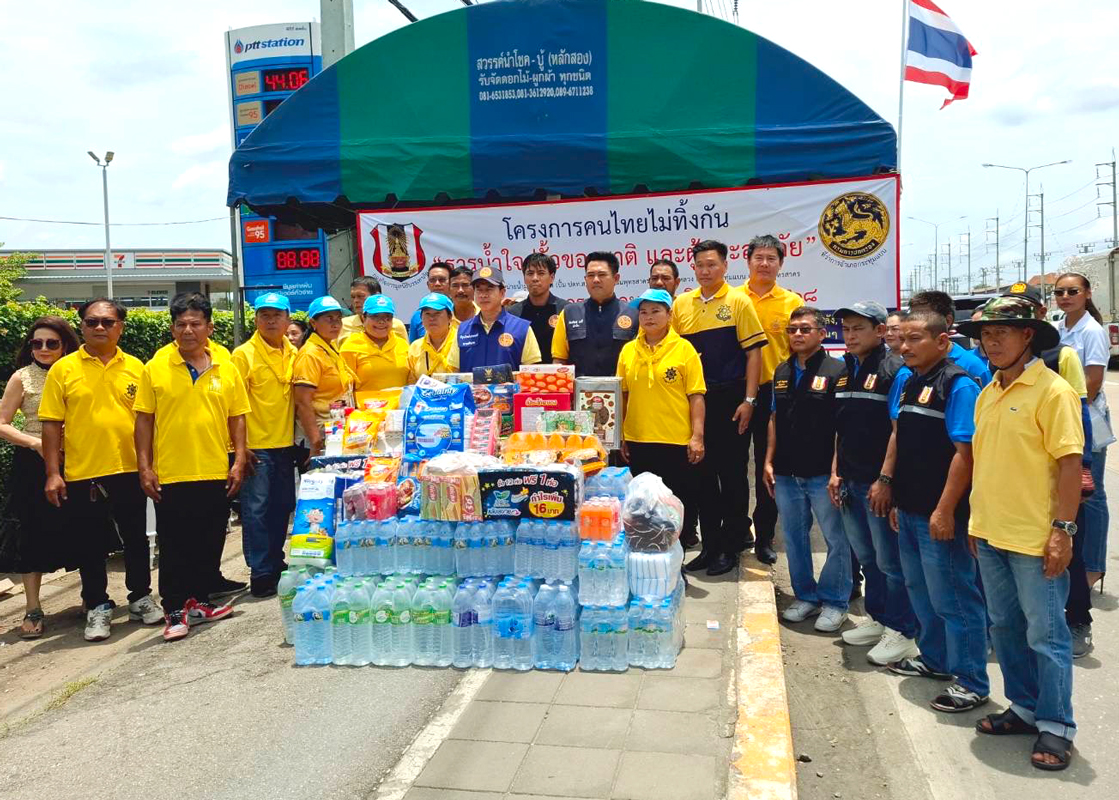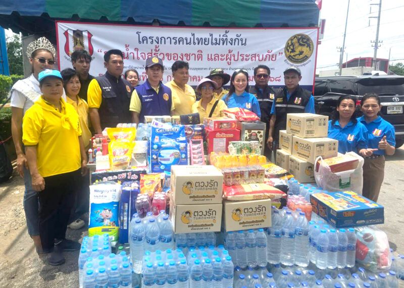 ในวันเดียวกัน มูลนิธิบรรเทาภัย นำโดย น.ส.นภัค บุญณัชนิธินาถ ตัวแทนประธานมูลนิธิฯ พร้อมด้วย นายมนตรี ขวัญพราย ผู้บัญชาการกองกิจการ ได้ร่วมมือกับอำเภอกระทุ่มแบนและหน่วยงานราชการ จัดโครงการ “คนไทยไม่ทิ้งกัน ธารน้ำใจสู่รั้วของชาติและผู้ประสบภัย” เพื่อระดมสิ่งของจำเป็น ส่งต่อให้แก่ผู้ประสบภัยจากสถานการณ์สู้รบตามแนวชายแดนไทย–กัมพูชา และเพื่อส่งกำลังใจให้เจ้าหน้าที่ทหารทุกนายที่ปฏิบัติหน้าที่อย่างเสียสละ